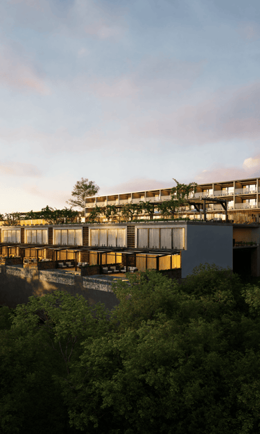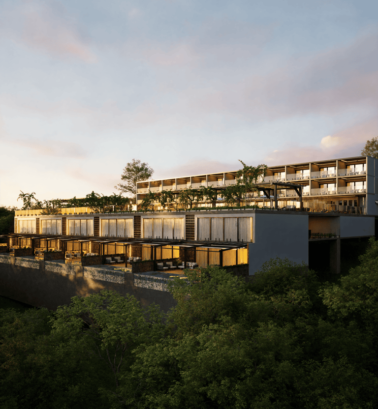 Envolto pela vegetação nativa, o resort nasce em total harmonia com o ambiente ao redor. A presença intensa do verde molda a atmosfera de tranquilidade e bem-estar, trazendo frescor, sombra natural e a sensação constante de refúgio. E, como protagonista desse cenário, surge o mar amplo, imponente e sempre presente. Cada ambiente foi estrategicamente posicionado para capturar o melhor da vista, permitindo que hóspedes contemplem o horizonte em um encontro perfeito entre céu e água.